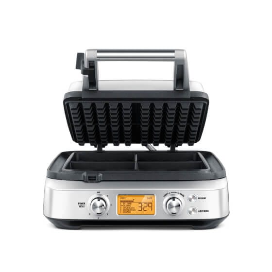 Vohvelirauta Sage BWM620 tunnetaan myös nimellä The Smart Waffle™ Pro. Tämä kahden vohvelin laite tarjoaa älykkään käyttöliittymän, joka mukauttaa paistoajan automaattisesti valitun vohvelityypin ja halutun ruskistustason mukaan. Tyylikäs teräspinta, LCD-näyttö ja tarkka lämmönjakelu luovat raamit täydellisille kotona paistettaville vohveleille, ilman sotkua.